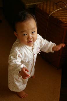 『手を離して立った』